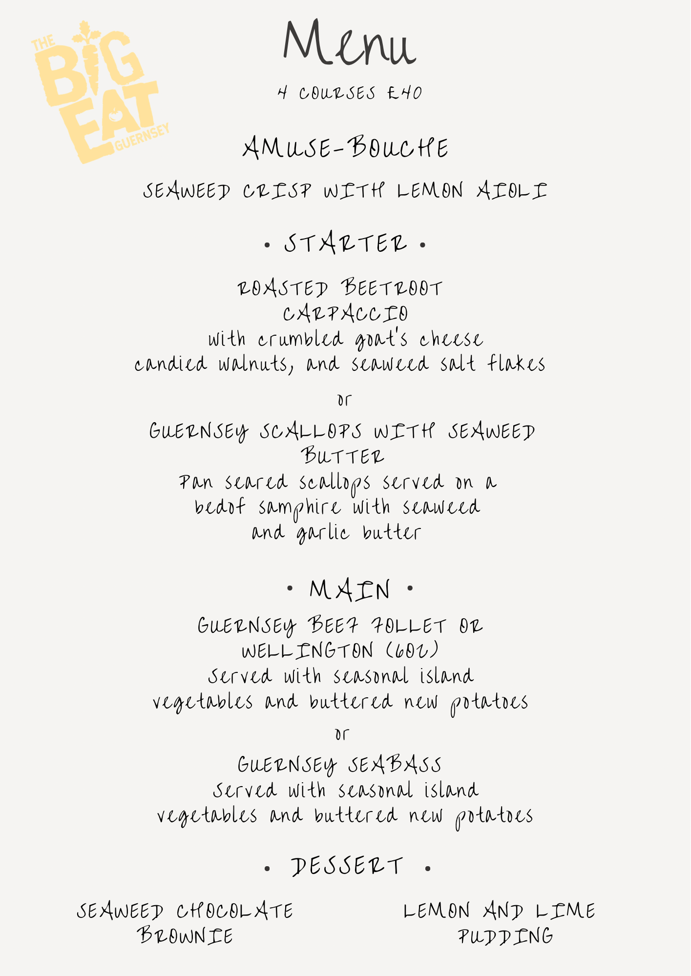 Our menu focuses on top-quality local produce, from fresh Guernsey seafood to perfectly cooked, tender steaks, all served in a comfortable, classic setting. The menu includes dishes like local scallops, seabass, Guernsey beef, and indulgent desserts with an island twist.